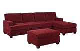 Cheap! Bobkona Zoey 3-Piece Corduroy Reversible Sectional Sofa with Matching Ottoman, Wine